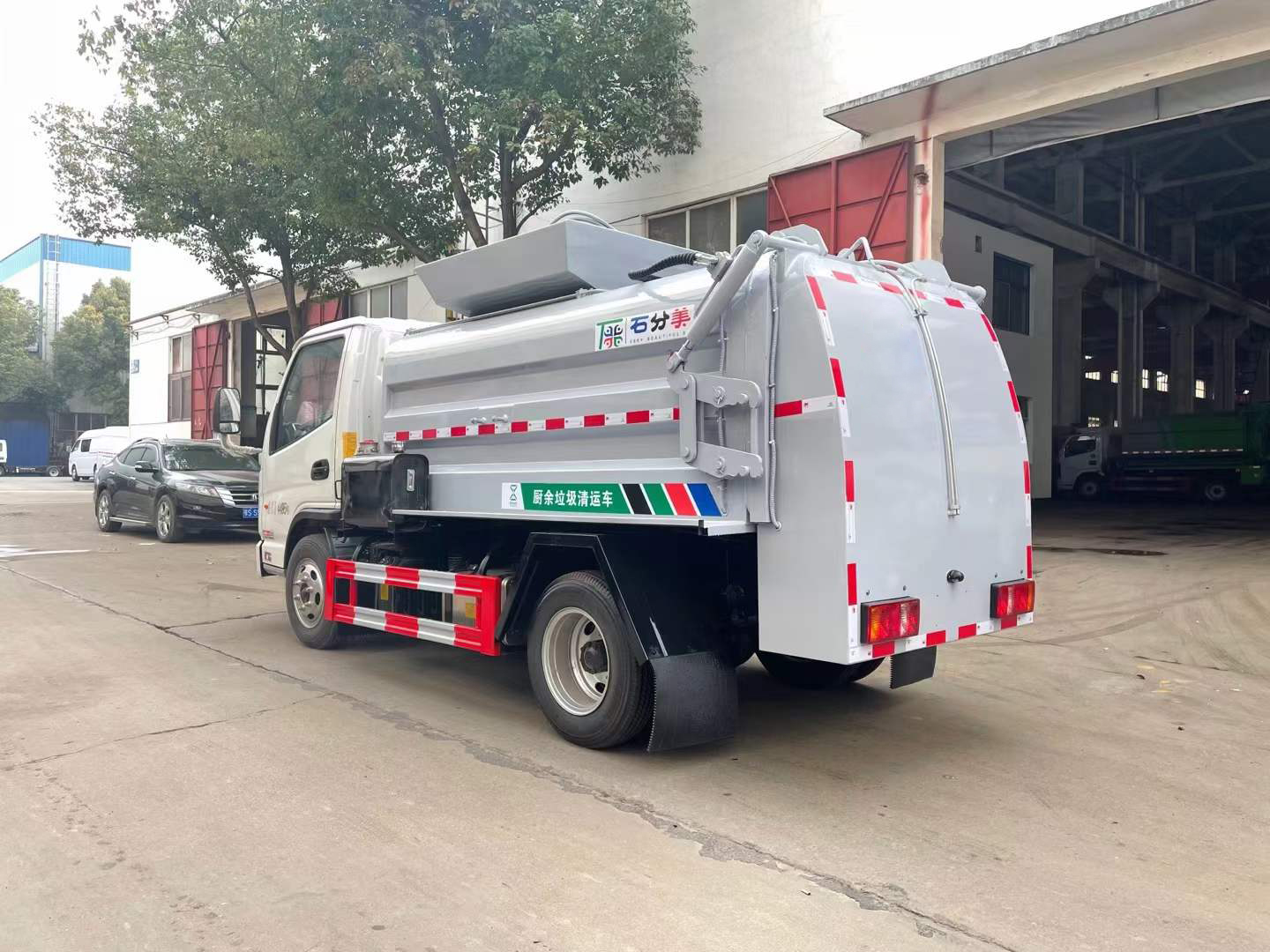 自動(dòng)舉升垃圾桶倒入垃圾,提升機(jī)頂部帶機(jī)械翻蓋,箱體底部雙液壓舉升自卸,箱體后部設(shè)有擋水槽,尾部裝有橡膠密封條,防污水滴漏。 |
