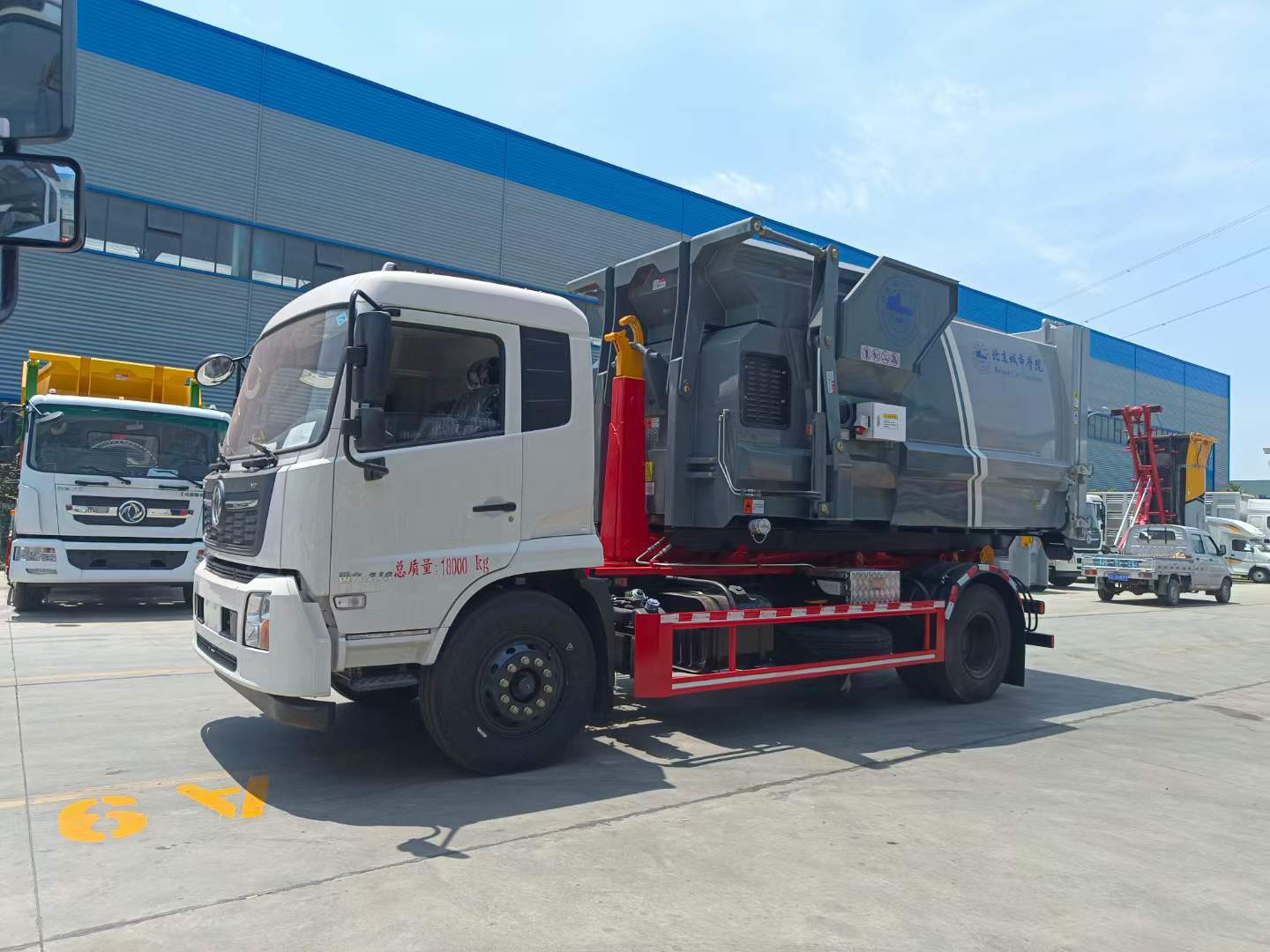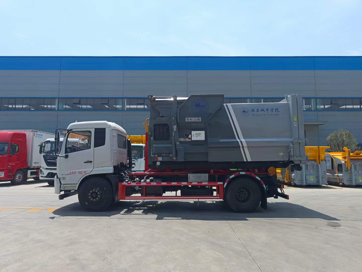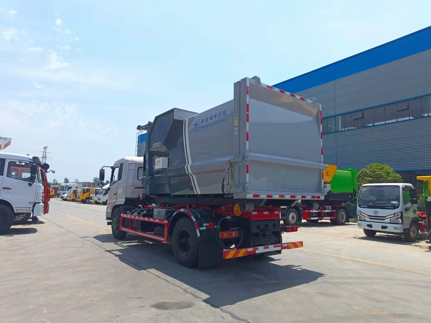 上裝配置:配套12~14方勾臂垃圾箱,主勾臂由高強度板材制作,雙油缸,國產多路閥,液壓油泵,標配駕駛室外部操作,可選裝駕駛室室內操作,選裝液壓后支腿,防誤操作,帶平衡閥,液壓鎖。